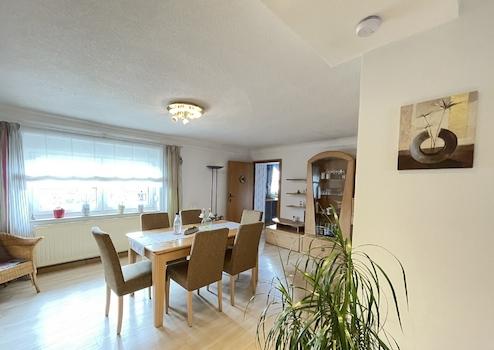 Die Immobilie bietet, auf 2 Etagen, ca. 245 m² Wohnfläche (EG: ca. 126 m², OG: ca. 119 m²). Die Wohnung im OG wird von der Eigentümerin genutzt, die Wohnung im EG steht derzeit LEER. Es gibt keine separaten Zugänge zu den beiden Wohnungen, da das Haus jahrzehntelang von Mutter und Tochter bewohnt war. Deshalb sind auch keine separaten Zähler für Strom, Wasser und Heizung vorhanden.