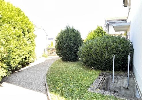 Hinter dem Haus findet man einen großzügigen Außenbereich vor, mit Terrasse, Blumen, Sträuchern, Hecken und mit einer stattlichen Grünfläche, die über einen solide gepflasterten Treppenabgang erreichbar ist. Interessenten mit „grünem Daumen“ werden es lieben, hier ihrem Hobby frönen zu können und alles, nach eigenem Geschmack + Ideen, zu gestalten. Auch Tierfreunde sind hier bestens bedient, denn das Grundstück ist komplett eingefriedet und bietet viel Platz für den Auslauf der geliebten Vierbeiner.