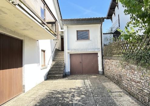 Neben den beiden in 1963 errichteten Garagen (übereinander angeordnet) steht als weitere Nutzfläche noch ein Kellerraum im Untergeschoss zur Verfügung, in dem auch die Heizanlage, die Waschküche und eine kleine Werkstatt untergebracht sind. Eine „innere“ Verbindung zur unteren Garage ist vorhanden. Eine Außentreppe, rechts neben der oberen Garage, verbindet die Grundstücksebene im Erdgeschoss mit der im Untergeschoss. Weiterhin verfügt die Immobilie über eine Teilunterkellerung, ausgeführt als „Kriechkeller“ (Höhe 1,20 m) mit Zugang von außen.