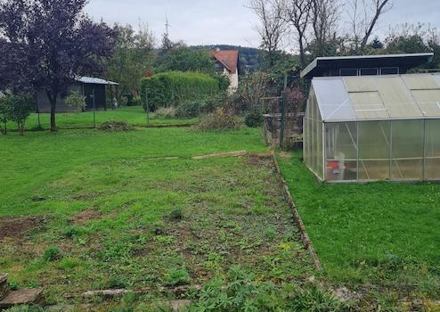 Das Grundstück mit 322 m² ermöglicht einen kleinen Garten, auch für eine Grillecke und die Kinderschaukel findet sich ein Platz.