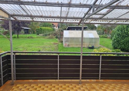 Obergeschoss bestehend aus 3 Zimmer, Diele, Abstellraum und große überdachte Terrasse (auf dem Anbau)