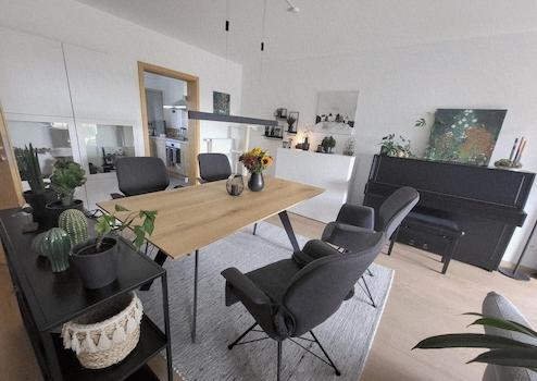 Die Doppelhaushälfte wurde in 2023 außen neu gestrichen. Der offene Wohnzimmer- und Essbereich hat letztes Jahr einen neuen Design-Boden bekommen. Auch die Innenwände wurden Ende 2023 neu gestrichen.