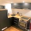 Das Schlafzimmer ist mit einem Boxspringbett und hochwertiger Matratze ausgestattet (140x200). Genügend Platz für Ihre persönlichen Sachen bietet ein Kleiderschrank mit Schiebetüren und eine geräumige Kommode. Die Küche ist in das Wohnzimmer integriert und vollausgestattet.