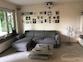 Wohnzimmer mit Sofa, Essberiech für 4 Personen und Beamer mit Leinwand; zusätzlicher TV vorhanden. Von hier Zugang zum großen Balkon mit Blick ins Grüne.