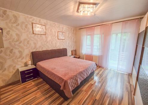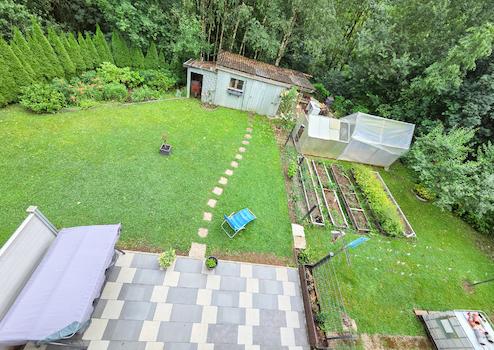 Das Haus verfügt über zwei abgeschlossene Wohneinheiten, die jeweils mit einer Einbauküche, einem Balkon sowie separatem Zugang ausgestattet sind. Eine große Terrasse im Gartenbereich lädt zum Entspannen im Freien ein. Zwei Garagen bieten zusätzlichen Komfort.