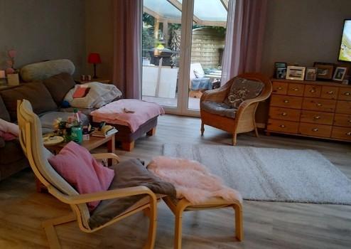 Das Wohnzimmer ist momentan als Wohnzimmer und Nähzimmer genutzt. Hier könnte leicht noch ein Bereich abgeteilt werden um ein Büro zu schaffen.