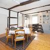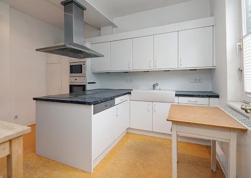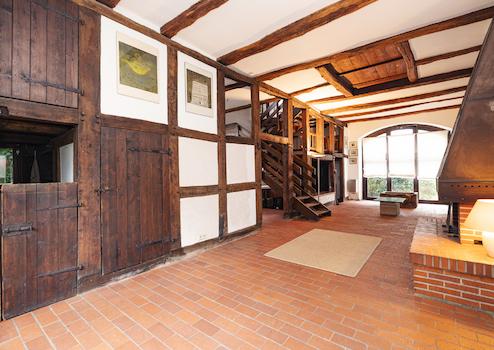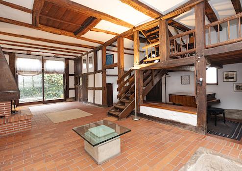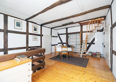 Der rechte Teil des Hauses wurde zu einem warmen Wohnbereich mit etwa 154 m² ausgebaut. Herzstück ist die beeindruckende Quer-Deele mit über vier Metern Deckenhöhe, massiven Eichenbalken, großen Fensterelementen und erhaltenem Fachwerk – ein Raum voller Geschichte, der sofort begeistert. Darüber hinaus bietet das Dachgeschoss weitere ausgebaute Nutzfläche. Beide Gebäudeteile können auf Wunsch wieder miteinander verbunden werden.
