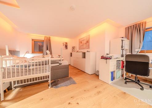 Im Erdgeschoss erwartet Sie ein großzügiger Wohnbereich mit direktem Zugang zur Terrasse und zum angrenzenden Garten. Durch die großen Fenster wirkt der Raum hell und freundlich. Zusätzlich befindet sich auf dieser Ebene ein separates Schlafzimmer, das sich ideal als Kinderzimmer, Gästezimmer oder Homeoffice nutzen lässt. Auch die Küche und der Essbereich sind hier untergebracht und fügen sich harmonisch in das Gesamtbild ein, perfekt für den Alltag und gleichzeitig mit genügend Rückzugsmöglichkeiten.