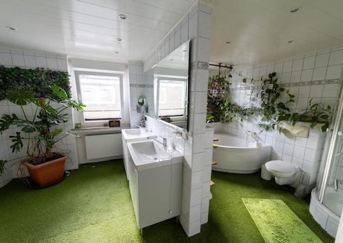 - Teilweise wurden die Fliesenböden mit hochwertigen Vinylböden belegt, die natürlich rückstandsfrei wieder rückgebaut werden können.