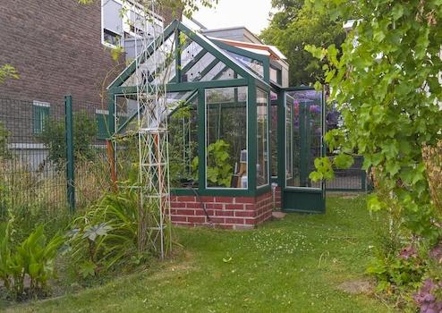 - Der Garten enthält wunderschöne Beete, ein zauberhaftes Gewächshaus sowie einen kleinen, malerischen Teich in dem Seerosen wachsen und auf dessen angrenzender, kleinen Terrasse man die Seele baumeln lassen kann. (ein kleines Gartenhaus für einen Rasenmäher, Werkzeug usw. steht am Rand des Grundstücks und ist ebenfalls von einem Beet eingerahmt.