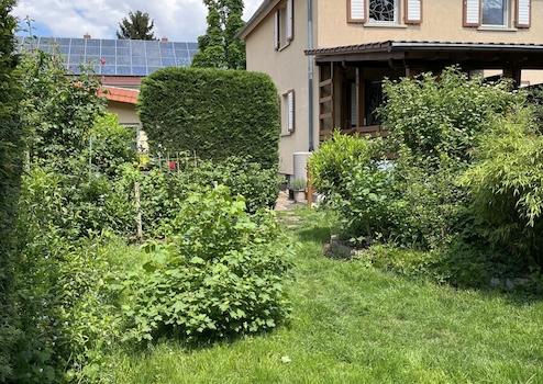 * Großzügiger Garten, vielfältig nutzbar: Romantische Sitznischen und Fläche zum Gärtnern