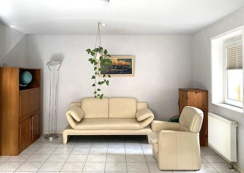 * Großzügiges Wohnzimmer mit angrenzender Veranda (überdacht)