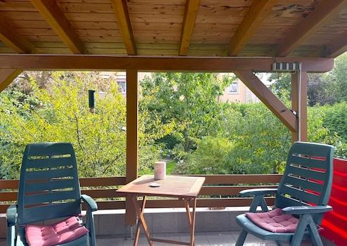 Ein besonderes Highlight ist die große überdachte Veranda, die im Frühjahr und Herbst ein zusätzliches Zimmer bietet.