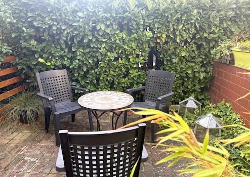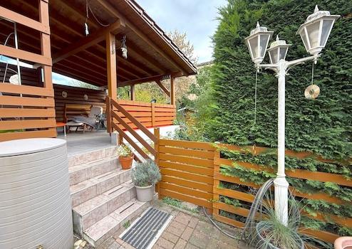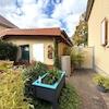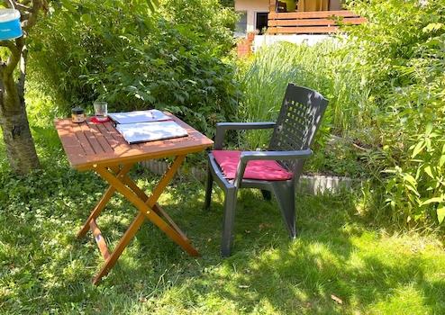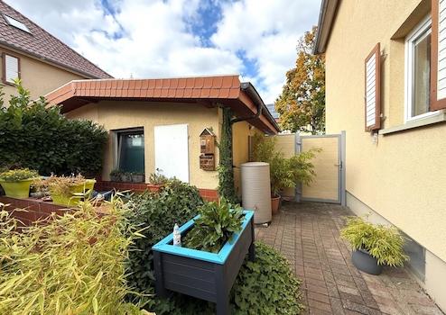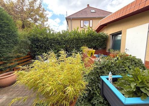 Im großzügigen Süd-Garten in ruhiger Nachbarschaft können Sie sich in einer romantischen Sitznische herrlich entspannen. Zum Gärtnern oder zu Spiel und Spaß (Pool, Trampolin z.B.) lädt dieser gepflegte Garten ebenfalls ein.