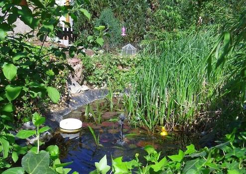 * Fischteich mit Wasserspiel (selbstregulierend, Fische können überwintern)