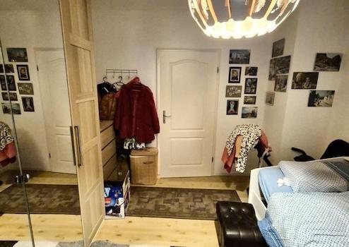 Die Wohnung wird renoviert übergeben. Die tapezierten und farbigen Wände auf den Fotos werden noch weiß gestrichen.