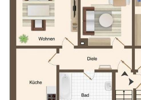 Ein gelungener Grundriss sorgt für eine optimale Raumausnutzung und Helligkeit in sämtlichen Wohnbereichen. Stilvoller Laminatboden in den Wohnräumen schafft eine warme Atmosphäre, während die offene Wohnküche und das Tageslichtbad mit pflegeleichten Fliesen ausgestattet sind. Die Diele bietet ausreichend Platz für Garderobe und Schuhschrank. Im Badezimmer mit Fenster erwarten Sie eine Dusche sowie eine separate Badewanne – perfekt, um nach einem langen Tag zu entspannen.
