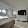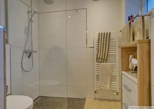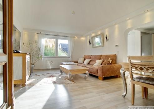 High quality fittings and furnishings throughout, in a harmonious colour scheme in light natural tones. On the ground floor you will find the fully fitted kitchen, which is equipped with an induction hob, oven and dishwasher (all Siemens) and a side-by-side fridge-freezer with water cooler. The living room is furnished with a cosy corner sofa, large smart TV (with satellite reception) and a dining table to seat four. Access to the conservatory with seating and also to the garden. Bathroom with walk-in shower, bath, heated towel rail and window. Bathroom suite installed only a few years ago. Separate guest WC. Upstairs is the main bedroom, furnished with a double divan bed and spacious wardrobe, a compact landing with working area and an additional, smaller bedroom featuring a pull-out bed, desk and wardrobe. Washing machine and dryer in the cellar.