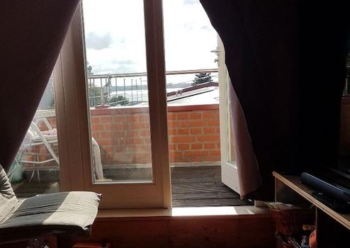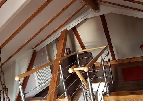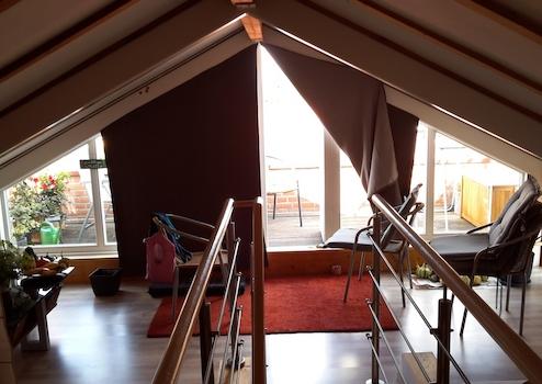 befindet sich im Obergeschoss des Altbaus und hat eine erhabene Dachterrasse mit Seeblick.