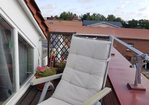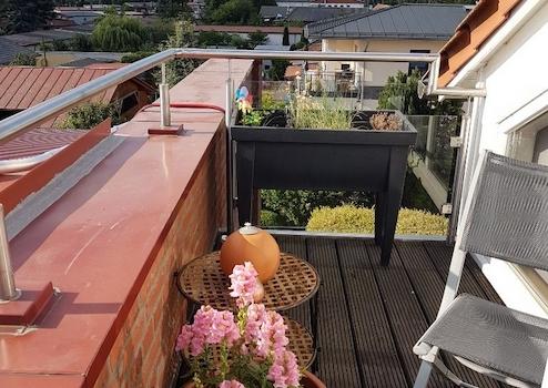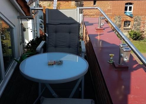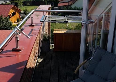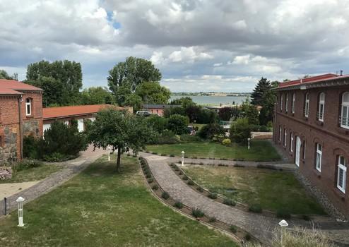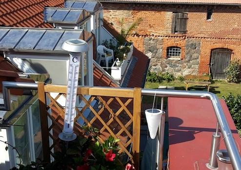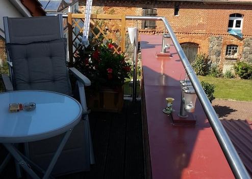 Von der Dachterrasse kann man direkt ins Storchennest und auf den Unteruckersee blicken. Der Lavendel auf dem Friesenwall lockt viele Schmetterlinge und Insekten an. Die Schwalben fangen dabei die Mücken. Morgens wärmen die Sonnenstrahlen die Dachterrasse, Abends sitzt man im Schatten und kann den Störchen zuschauen. Nachts hört man die Frösche quaken. Morgens weckt der Storch mit Geklapper. Zur Wohnung gehört auch ein kleiner Garten.