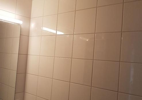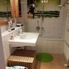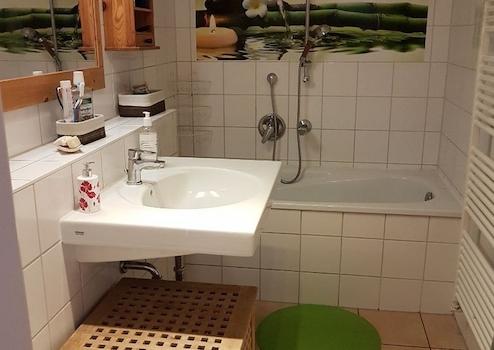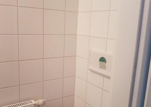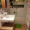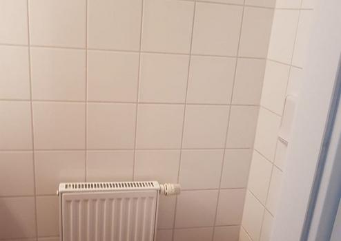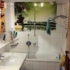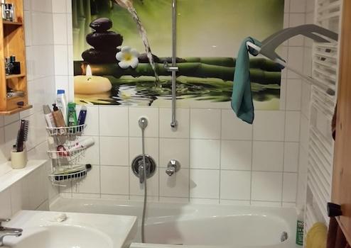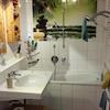 Das verfügt über eine Wannendusche. Ein zusätzliches Gäste-WC ist vorhanden. Ein Abstellraum neben dem Eingang bietet Platz für Waschmaschine, Trockner und Regale. Zwei weitere Abstellkammern in der Wohnung und ein großer Bauernkeller sind vorhanden.