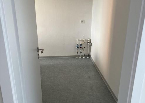 Die Wohnung verfügt über eine Einbauküche mit Cerankochfeld sowie einen separaten Abstellraum mit Waschmaschinenanschluss; Waschmaschine und Trockner sind bereits vorhanden. Ein Balkon mit ruhigem, grünem Ausblick, ein eigener Kfz-Stellplatz hinter dem Haus, Aufzug und Gegensprechanlage runden die Ausstattung ab. Zur gemeinschaftlichen Nutzung stehen ein Münztrockenautomat und ein abschließbarer Fahrradraum zur Verfügung.