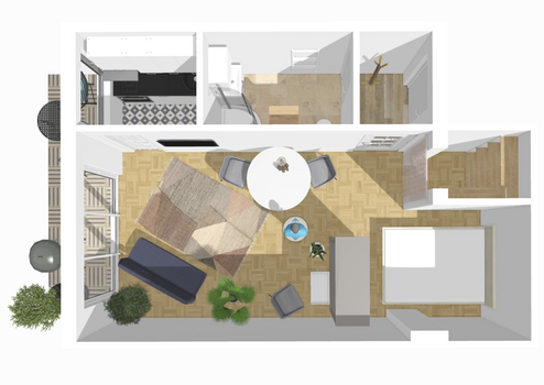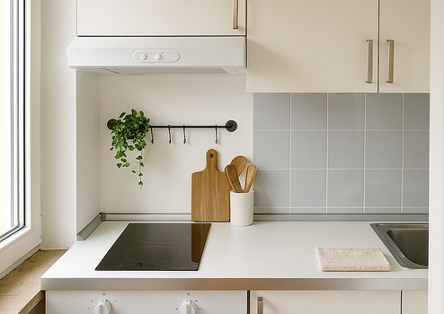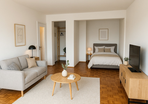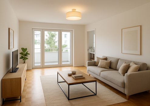 Hinweis: Die auf den Fotos dargestellte Möblierung wurde teilweise mittels künstlicher Intelligenz visualisiert und dient der besseren Vorstellung. Die Wohnung wird unmöbliert aber inkl. der Einbauküche übergeben.