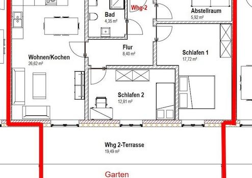 Die Wohnung ist für Singles oder Paare vorgesehen, also max. 2 Personen.