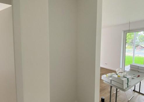 - Glatt verputzte Wände mit atmungsaktivem Gipsputz mit einem Farbanstrich