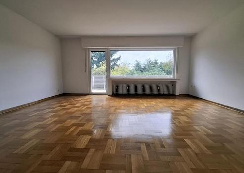 Das großzügige und sonnendurchflutete Wohnzimmer (fast 30 qm) mit großem Panoramafenster und Zugang zum Balkon mit Südausrichtung sowie ein weiteres Zimmer (Gäste- oder Arbeitszimmer) sind zur Gartenseite hin ausgerichtet.