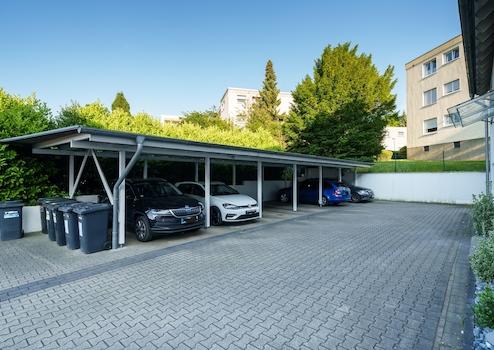 Zu dem Objekt gehören zwei Carport-Plätze, die auch großen Fahrzeugen ein sicheres Dach über dem Kopf bieten, sowie zwei separat abgeschlossene Kellerräume. Das Haus verfügt über eine gesonderte und beheizte Waschküche, in der dem hier angebotenen Objekt Plätze für je zwei Waschmaschinen und zwei Trockner zugewiesen sind. Die entsprechenden Stromanschlüsse sind der Wohnung direkt zugeordnet. Ein gesonderter Fahrradkeller rundet die Nutzungsmöglichkeiten im Kellerbereich ab.