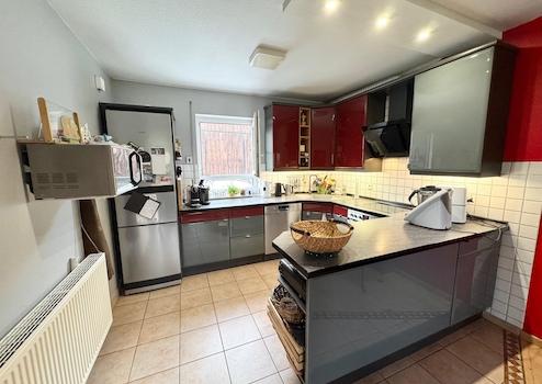 Terrasse, Garten, Keller, Vollbad, Duschbad, Einbauküche, Gäste-WC, Laminat, Fliesen