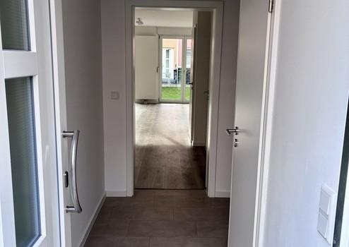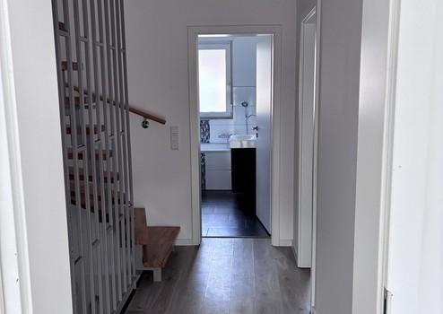 - Erdgeschoss: Offener Wohn- und Essbereich mit moderner Einbauküche, Gäste-WC, Terrasse mit Süd-Ausrichtung und Zugang zum gepflegten Garten. Gartenhaus und separater Zugang über eine Gartentür.