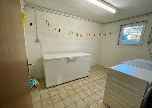 Die Außenwände sind monolitisch mit Hochlochziegel ausgeführt, die Decken sind aus Stahlbeton. Die Decke über dem Erdgeschoss gegen den kalten Dachraum ist oberseitig mit 24 cm Dämmung und einer OSB-Lage gedämmt. Durch die sehr gute Dämmung konnte der Wärmeenergieverbrauch deutlich reduziert werden, so dass sich das Haus sparsam beheizen lässt. Der Verbrauch lag in den letzten Jahren bei ca. 15.000 kWh Nachtstrom (entspricht ca. 1.500 ltr. Öl), bei Nutzung des Erdgeschosses und sporadischer Nutzung der Wohnräume im Tiefparterre.