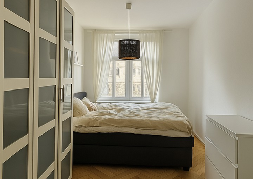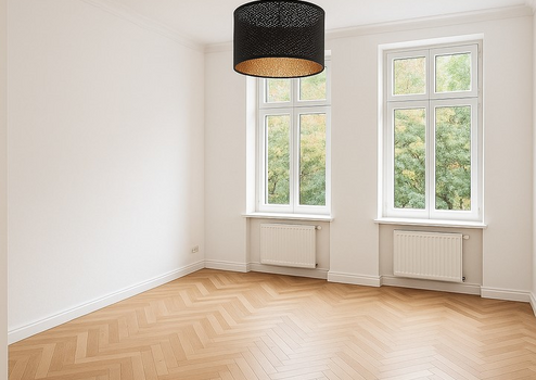 Aus zwei nebeneinanderliegenden Einheiten – Wohnung links & Wohnung rechts – entsteht eine ca. 125,05 m² große 5-Zimmer-Wohnung mit 2 Balkonen zur Morgensonne, 2 Bädern und idealem Zuschnitt für Elternschlafzimmer, zwei Kinderzimmer und ein Gäste-/Homeoffice-Zimmer. Highlight ist der schöne Erker zur Straßenseite (siehe Titelbild) – viel Tageslicht und typischer Altbau-Charme.