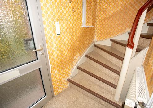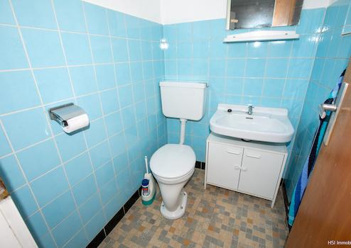 Das 1955 erbaute, massive Einfamilienhaus mit Satteldach liegt in einer ruhigen und familienfreundlichen Wohnstraße.