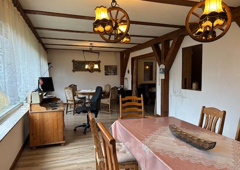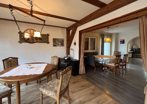 Die Immobilie wurde ca. 1962 in Massivbauweise auf einem ca. 2.402 m² großen Grundstück errichtet und bietet vielseitige Nutzungsmöglichkeiten. Das Zweifamilienhaus verfügt über eine gut durchdachte Raumaufteilung mit einer Wohnfläche von ca. 172 m², verteilt auf das Erd- und Dachgeschoss mit insgesamt sechs Zimmern. Im Erdgeschoss befinden sich ein Bad, ein großzügiges Wohnzimmer, ein Esszimmer mit Zugang zur Terrasse sowie zum Garten, eine Küche und ein weiterer großzügiger Raum. Das Obergeschoss umfasst drei Zimmer, einen Balkon, eine Küche sowie ein Badezimmer. Das Kellergeschoss bietet Ihnen zusätzlich vier Kellerräume sowie einen direkten Zugang zum Garten. Der pflegeleichte Garten lädt zum Entspannen und Verweilen ein. Ebenfalls steht Ihnen eine große Garage zu Verfügung. Das Objekt befindet sich in einem renovierungsbedürftigen Zustand, bietet jedoch erhebliches Potenzial zur individuellen Gestaltung und Wertsteigerung.