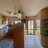 An die große Küche mit vorhandener Einbauküche schließt sich direkt eine Speisekammer an. Die Küche hat zwei Innentüren in Form von in der Wand laufenden Schiebetüren zum Flur und zum Essbereich, sowie Fenster und Terrassentür nach Westen zur Straße. Die südliche Außenwand des Essbereichs ist nach Art eines Wintergartens ganzflächig verglast; eine außenliegende Raffstoreanlage sorgt bei Bedarf für Sonnenschutz mit gleichzeitigem Durchblick.