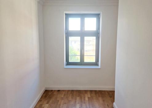 Das Schlafzimmer bietet mit seiner klaren Raumstruktur ausreichend Platz für ein Doppelbett und Stauraummöglichkeiten. Das danebenliegende Kinderzimmer kann flexibel als Arbeits-, Gäste- oder Hobbyraum genutzt werden.