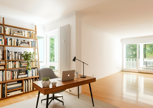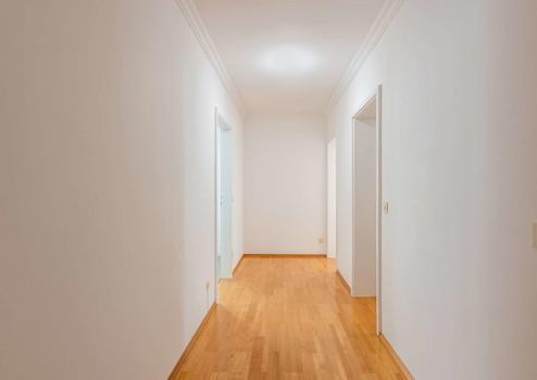 Der ca. 2 m breite Durchgang kann mit geringem Aufwand zu einer Tür umgestaltet werden. So entsteht auf Wunsch ein vollwertiges drittes Zimmer, ideal als Gästezimmer, Homeoffice oder Kinderzimmer.