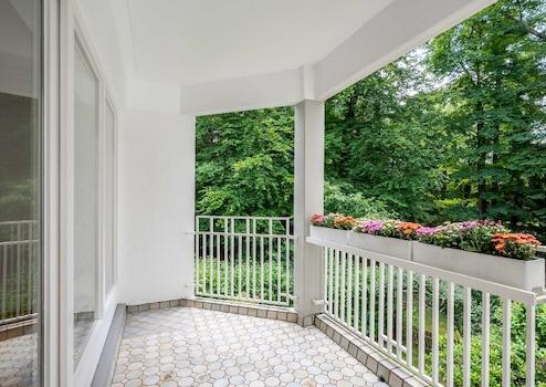 Der ca. 8,3 m² große, überdachte Süd-Balkon/Loggia bietet einen ruhigen Blick ins Grüne und lädt zum Entspannen ein.