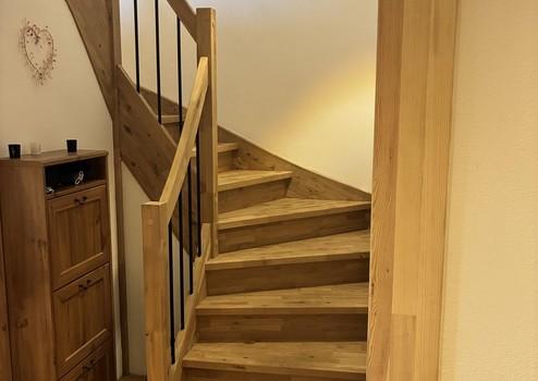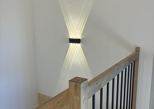 Über die Eichenholz Treppe gelangen sie ins OG. Dort befinden sich 2 große Kinderzimmer, das Schlafzimmer mit Ankleidezimmer und ein großzügiges Badezimmer, mit XL Badewanne, begehbahrer Dusche, Toilette und 2 Waschbecken.