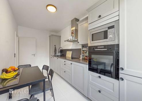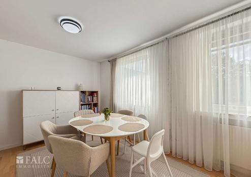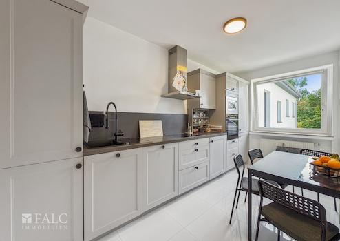 Herzstück der Wohnung ist das große Wohn- und Esszimmer, das dank seiner großzügigen Fensterfront viel Tageslicht erhält und einen idealen Mittelpunkt für gemeinsame Stunden bildet. Hier lassen sich Wohnen, Essen und geselliges Beisammensein perfekt verbinden. Die hochwertige Einbauküche von Nolte wurde ebenfalls vor zwei Jahren eingebaut und ist mit Markengeräten ausgestattet. Eine praktische Nische bietet zusätzliche Abstellfläche und macht die Küche besonders funktional.