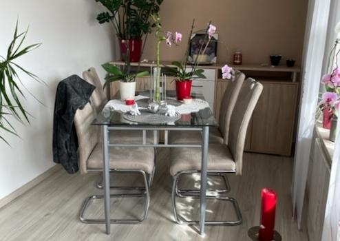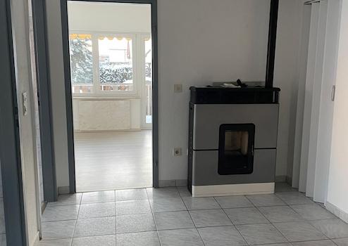 Die Wohnung besteht aus Küche, Wohn-Esszimmer, Schlafzimmer, Kinderzimmer, Bad mit Badewanne und Dusche/WC, Balkon, Stellplatz, großer Kellerraum, der auch als Hobbyraum genutzt werden könnte. Beheizt wird die Wohnung mit einer Marmorheizung und einem Pelletsofen.