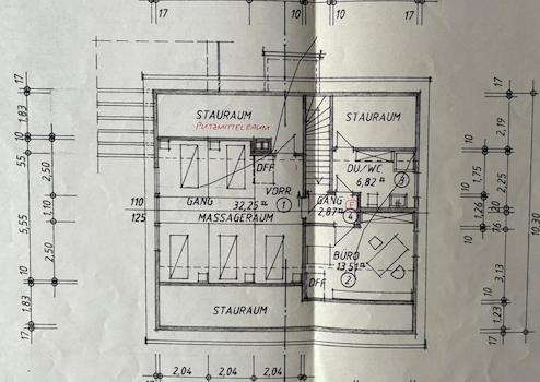 Das komplette Obergeschoss (Dachausbau) wurde für physikalische Therapie genutzt und enthält neben einem großzügigem Behandlungsraum auch ein Büro und ein Bad mit Dusche und Toilette. Der Büroraum kann jederzeit als Essküche und der Praxis-/Massageraum als Schlaf-/Wohnraum umgestaltet werden.