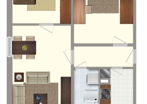 - alle Wohnräume sind mit CV-Belag in Holzplankenoptik ausgestattet