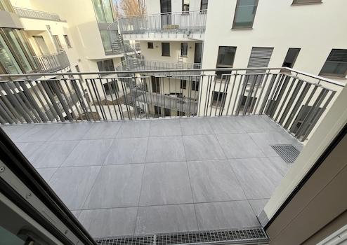 Balkon mit 12 m² (Nordosten), französischer Balkon im Wohnzimmer (Südwesten)