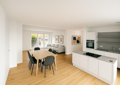 Malerarbeiten, Bodenbeläge, Fliesenarbeiten und Sanitär Feininstallation können nach eigenen Vorstellungen gestaltet werden, sind aber vom Käufer zu übernehmen.
