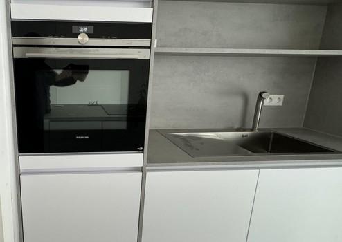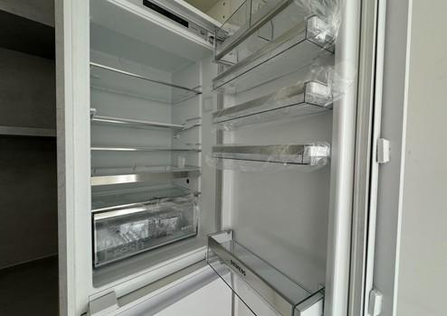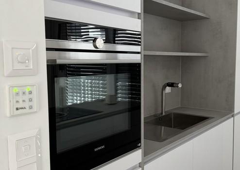 Siemens Geräte: Backofen mit integrierter Mikrowelle, Spülmaschine, Kühlschrank.