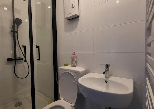 Separates Badezimmer mit Dusche, WC und Waschbecken